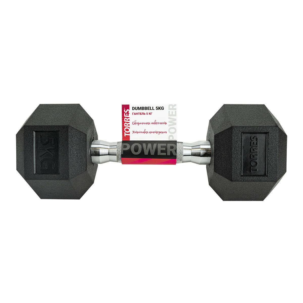 Металлическая ручка с насечками имеет эргономическую форму, что обеспечивает прекрасный захват и предотвращает выскальзывание даже при самых активных тренировках. Литая (не наборная) конструкция обрезиненных дисков-шестигранников, делает снаряд более стабильным. Форма шестигранника обеспечивает хорошую устойчивость на полу, предотвращает перекатывание гантелей, а так же делает возможным и нужным использование этих гантелей как упоров для отжимания.