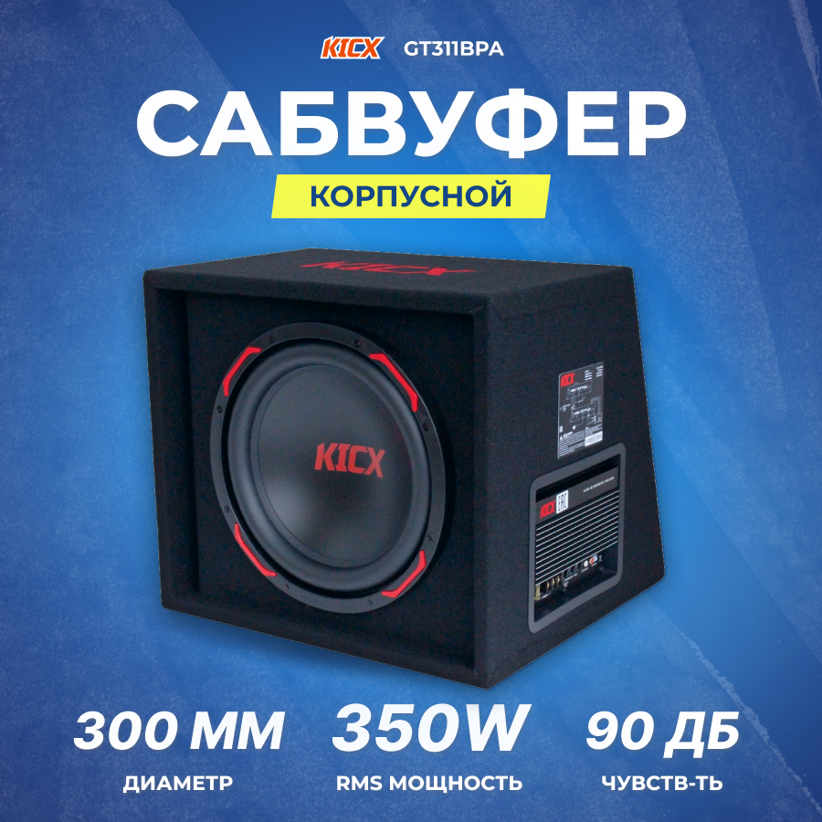 Сабвуфер автомобильный Kicx GT311BPA, максимальная мощность 975Вт, размер динамика 30 см (12 дюйм.), частотный диапазон 30Гц-1500Гц, активный (2013847)