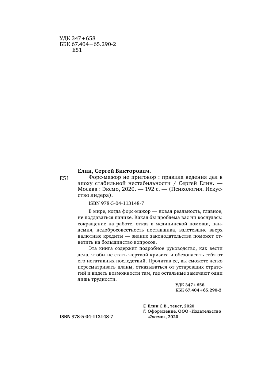 Форс-мажор не приговор. Правила ведения дел в эпоху стабильной нестабильности (Сергей Елин); Эксмо, БОМБОРА, 2020