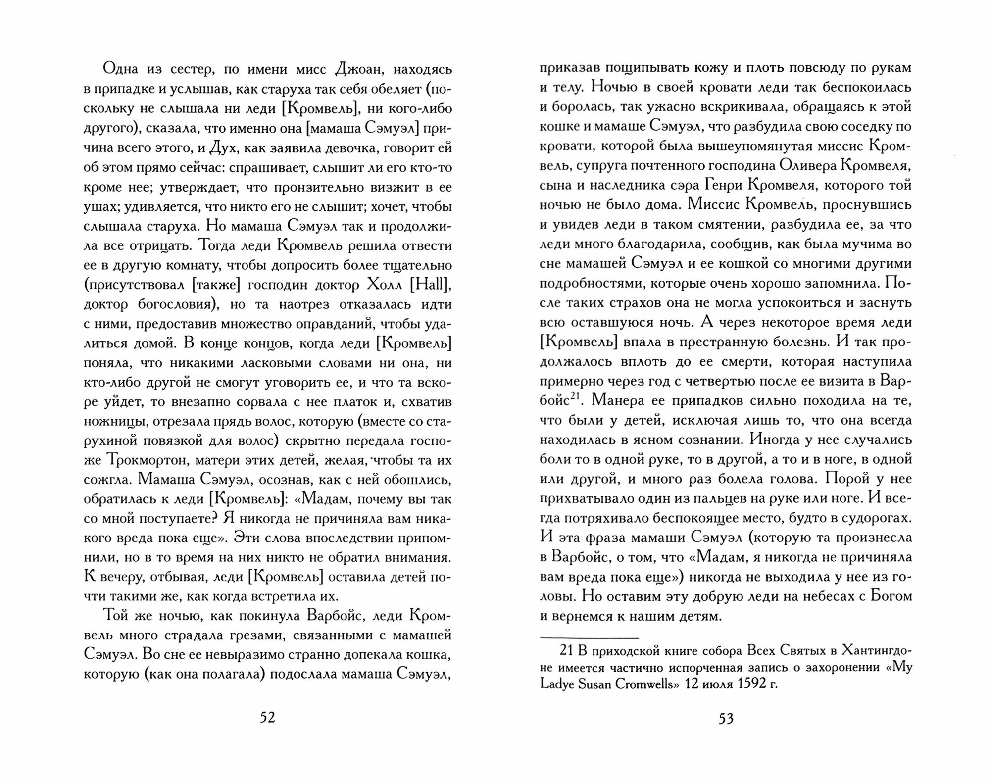 Замечательная книга! В первую очередь, это исторический документ. В процессе чтения можно подробно ознакомиться с процессом над колдунами, с показаниями свидетелей и принятыми решениями по делу. По причине появления вот таких вот якобы одержимых, как сёстры Трокмортон, были запущены бесчеловечные и бессмысленные суды над ведьмами. У читателя есть уникальная возможность понять, как это было на самом деле. Документ дополнен очень подробным, понятным и исчерпывающим описанием и пояснением событий той эпохи.