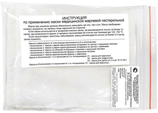 Маска медицинская марлевая "Фэст" №5 ООО Предприятие ФЭСТ (759181) (размер: L)