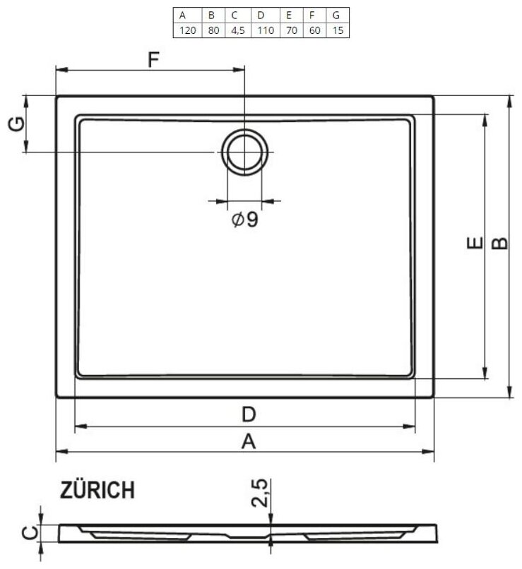 Модель: Zurich 274 120x80 DA7400500000000 Белый без антискользящего покрытия