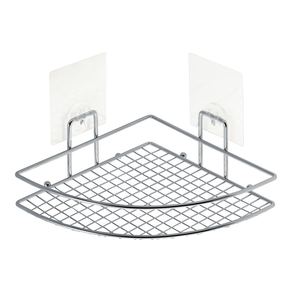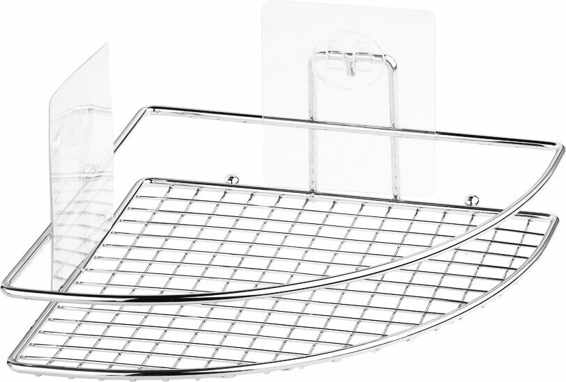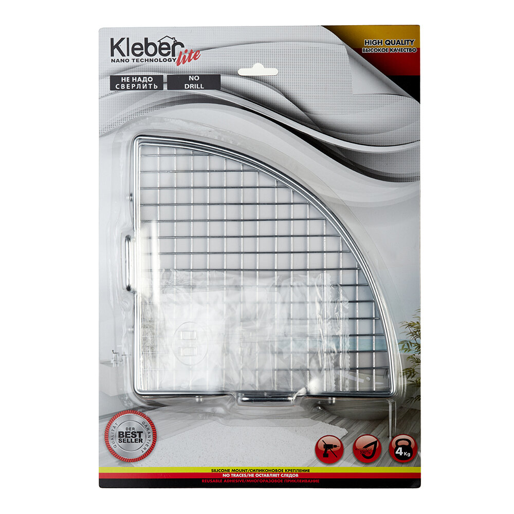 Нужен небольшой аксессуар для косметических средств? Воспользуйтесь угловой полкой от бренда Kleber, она создана из высококачественного хромированного металла. Полка угловая металлическая не заржавеет, как многие аналогичные изделия, поскольку материал устойчив к влаге. Чтобы закрепить навесную полку на стене, вам не нужно сверлить отверстия и делать замеры. Уникальные многоразовые силиконовые крепления отлично удерживают полочку для ванной на любой вертикальной поверхности. Угловая полка настенная - функциональное и практичное решение для ванной! Она выдерживает нагрузку до 4 кг.