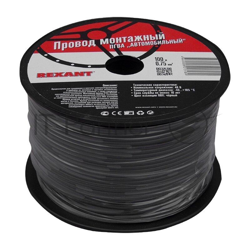 Провод ПГВА REXANT предназначен для гибкого соединения автотракторного электрооборудования и приборов с номинальным напряжением до 48 В, изготавливается для автомобильной проводки и элементов питания и управления. Состоит из многожильной токопроводящей жилы с поливинилхлоридной изоляцией.