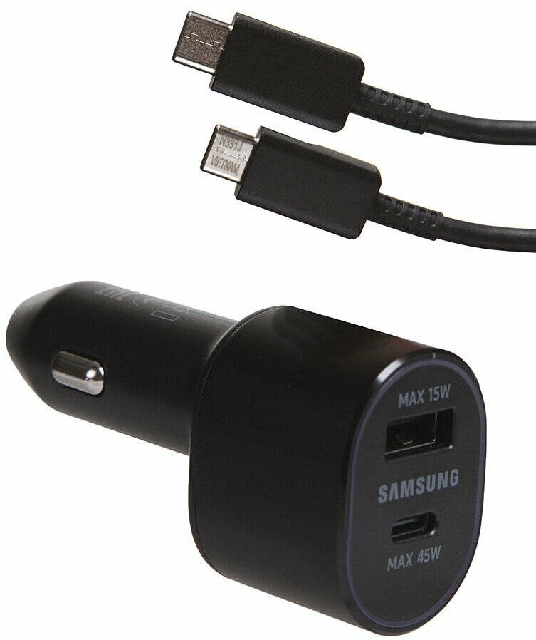 Автомобильное зарядное устройство Samsung позволяет зарядить широкий спектр гаджетов и мобильных устройств, используя стандартный разъем прикуривателя в салоне автомобиля. Наличие двух портов разного типа в АЗУ существенно расширяет функциональность. Порт Type-C с поддержкой быстрой зарядки 45 Вт позволяет восстановить заряд устройства, поддерживающего эту технологию, за считанные минуты. А второй более привычный USB-A способен поддерживать до 15 Вт, что также может серьезно увеличить скорость зарядки гаджетов. В комплекте с АЗУ идет кабель microUSB, который позволит заряжать устройства с подобными разъемами сразу же, либо просто подключать гаджеты друг к другу и обмениваться информацией.