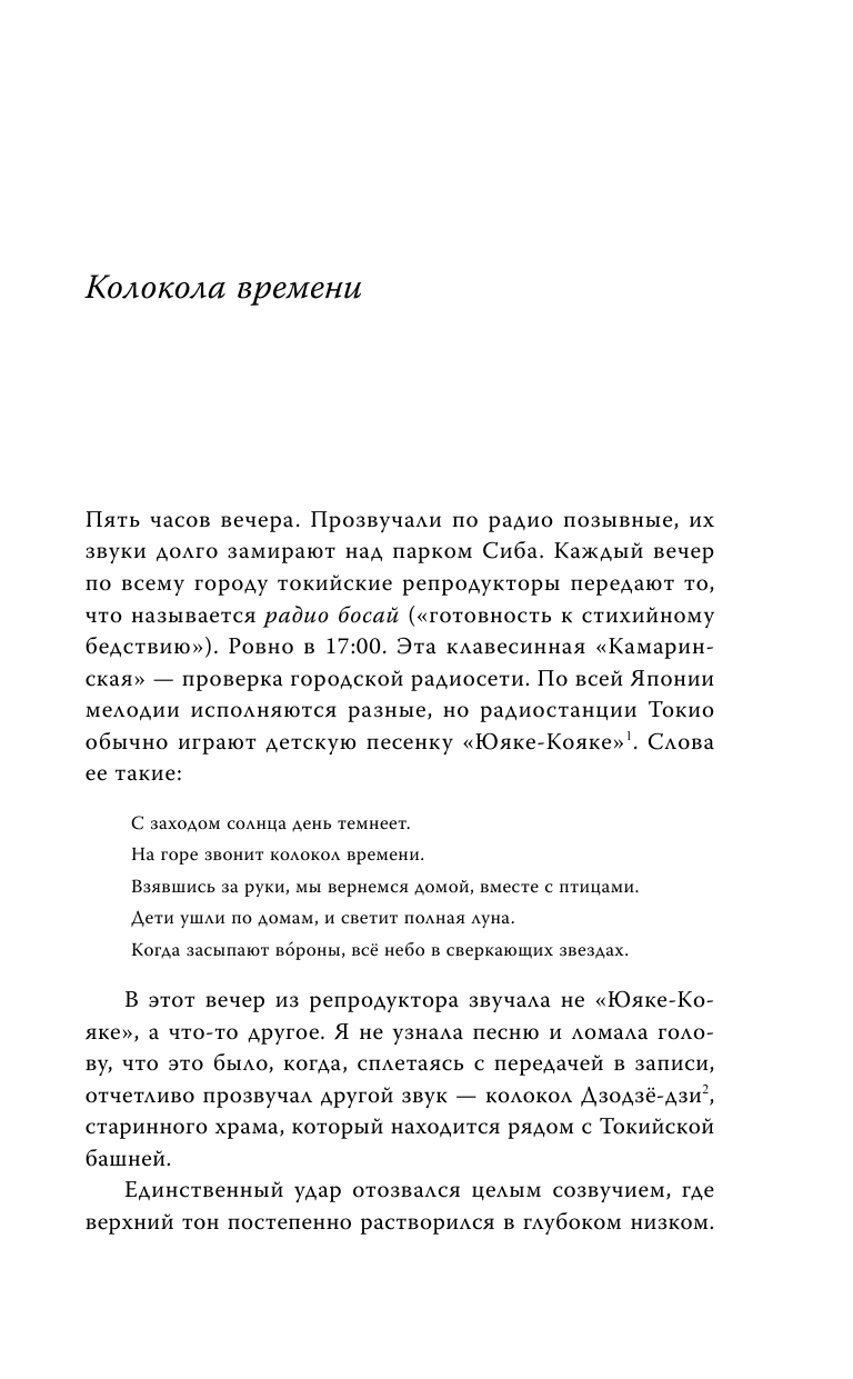 Давно прохожу мимо книг современных путешественников и живущих в Японии, но никогда не пропускаю отзывы Фии Сергеевны Шутовской, которая рекомендует эту книгу. На самом деле удивительная книга, трудно определить её жанр, это и художественное произведение, и путеводитель, и книга по истории. С ней перемещаешься и по Токио-Эдо, и во времени в поисках колоколов, часть из которых утеряно, встречаешься с разными людьми, узнаёшь о времени в Японии. Сомнительно, что удастся побывать в местах, где побывала автор, ведь Токио быстро меняется, но книгу стоит прочитать.