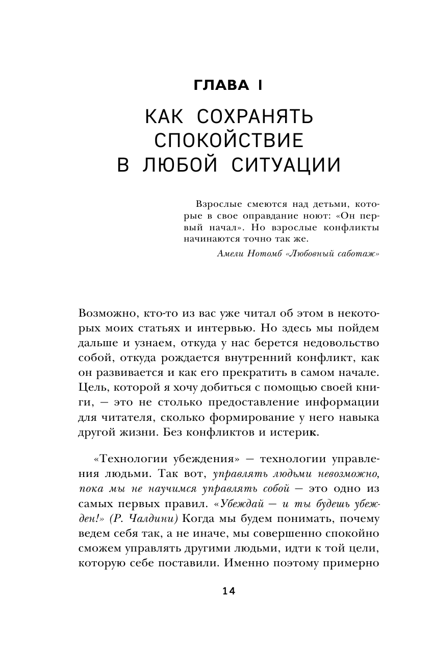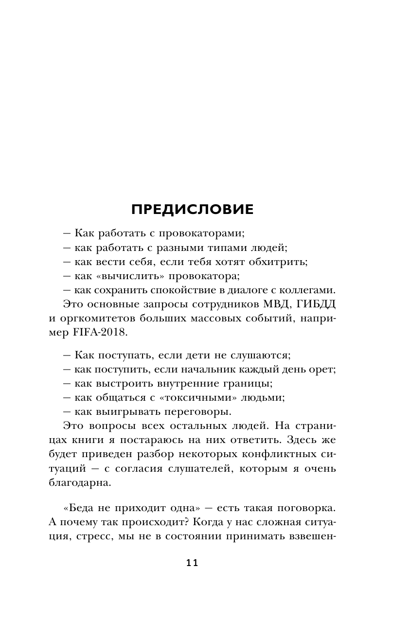 2 дня читала взахлеб не отрываясь! Эта книга поможет взлететь на новый уровень понимания законов отношений, нивелировать действия манипуляторов и агрессоров, решать конфликты и убеждать. Легкий слог в сочетании с профессиональной терминологией и объяснением этих терминов, делает чтение приятным и понятным. И к тому же, книга научит спокойно реагировать на то, что ранее приводило в бешенство или в ступор и бессилие.