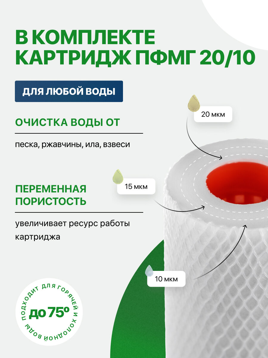 - Фильтр в сборе с установленным картриджем Гейзер ПФМГ 20/10 - 10SL