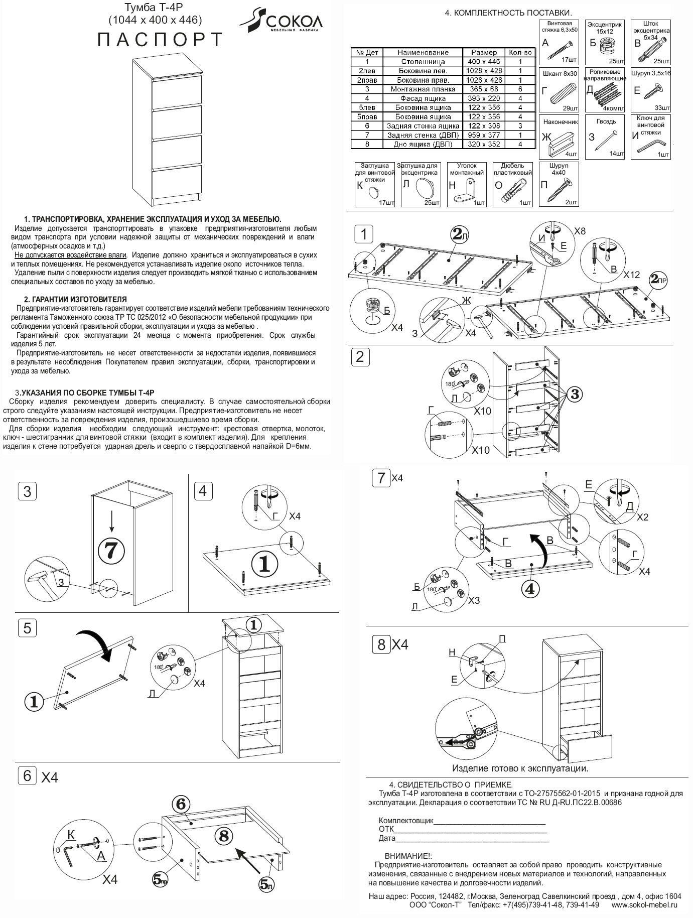 Комод с 4-мя ящиками и дверью - высокий, функциональный комод, компактный и удобный, поможет вам сохранить ваши вещи в порядке.В четырёх ящиках комода удобно хранить вещи, одежду, игрушки, документы, обувь, все, что Вам угодно хранить в порядке.Высота комода допускает включение его в состав мебельного ансамбля дамского уголка в качестве мини- подзеркальника.Изюминка этой модели - скошенный под 45 градусов верхний край фасадов выдвижных ящиков и кромки столешницы комода.Эта креативная находка добавляет комоду стильного шарма, визуальной лёгкости и снижает уровень травмоопасности.Лаконичный дизайн комода , дополненный красотой модного цвета Венге, легко интегрируется в любой интерьер.Комод имеет четыре выкатных ящика, закреплённых на роликовых направляющих, открытие ящиков за верхний край фасада.В производстве мебели использовались только высококачественные материалы и фурнитуры.Выполнен комод из ламинированной ДСП, толщиной 16 мм, края деталей защищены кромкой ПВХ.Мебель поставляется в разобранном виде, с комплектом фурнитуры и инструкцией по сборке.Размер комода (ШхГхВ): 40х45х104 см.Вес комода в упаковке: 30 кг.Производитель - Российская фабрика мебели Сокол, Комод с 4-мя ящиками и дверью - высокий, функциональный комод, компактный и удобный, поможет вам сохранить ваши вещи в порядке. В четырёх ящиках комода удобно хранить вещи, одежду, игрушки, документы, обувь, все, что Вам угодно хранить в порядке. Высота комода допускает включение его в состав мебельного ансамбля дамского уголка в качестве мини- подзеркальника. Изюминка этой модели - скошенный под 45 градусов верхний край фасадов выдвижных ящиков и кромки столешницы комода. Эта креативная находка добавляет комоду стильного шарма, визуальной лёгкости и снижает уровень травмоопасности. Лаконичный дизайн комода , дополненный красотой модного цвета Венге, легко интегрируется в любой интерьер. Комод имеет четыре выкатных ящика, закреплённых на роликовых направляющих, открытие ящиков за верхний край фасада. В производстве мебели использовались только высококачественные материалы и фурнитуры. Выполнен комод из ламинированной ДСП, толщиной 16 мм, края деталей защищены кромкой ПВХ. Мебель поставляется в разобранном виде, с комплектом фурнитуры и инструкцией по сборке. Размер комода (ШхГхВ): 40х45х104 см. Производитель - Российская фабрика мебели Сокол.