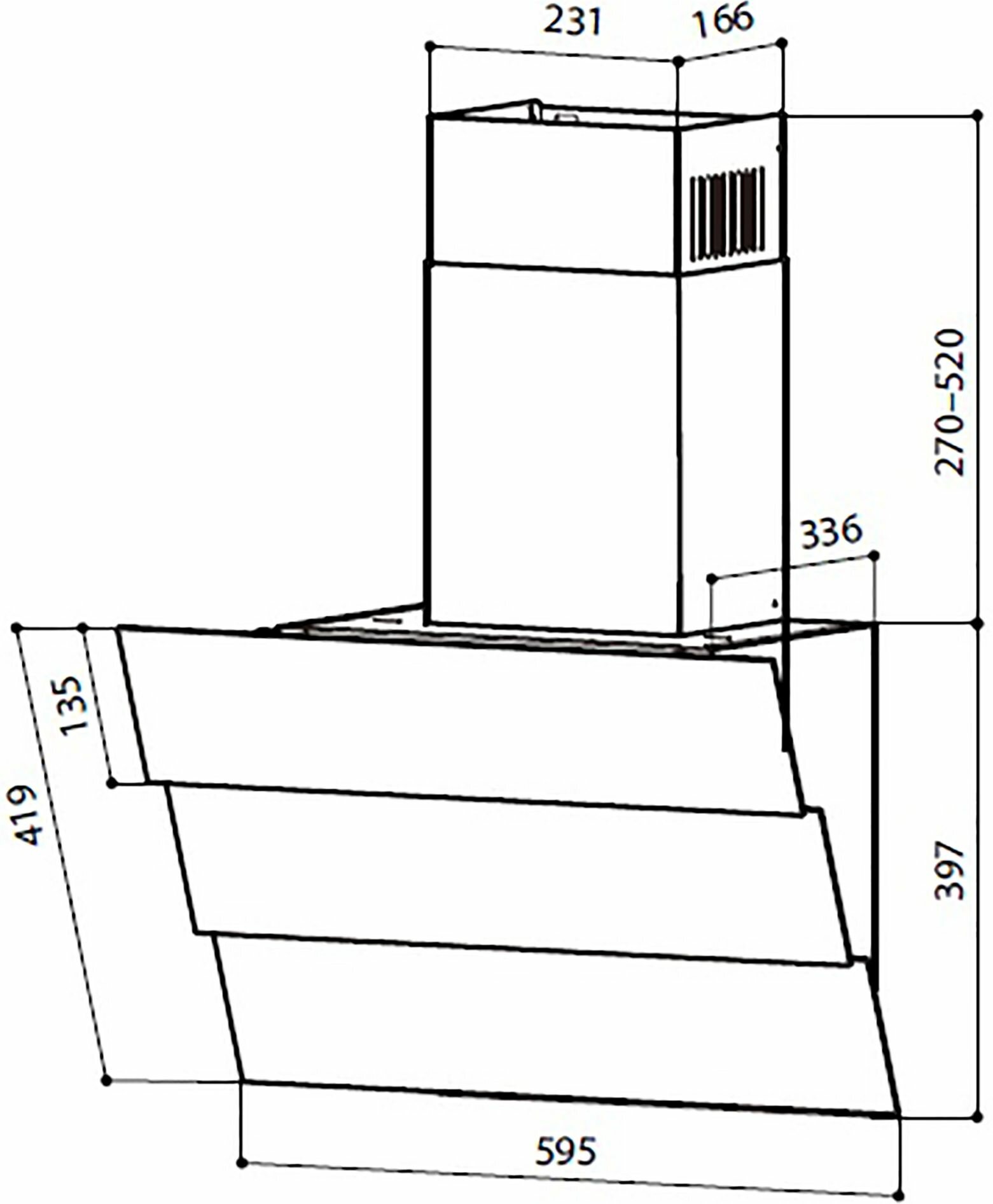 | Ширина вытяжки | 59.5 см |