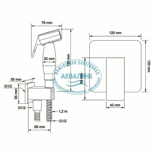 В комплекте: встраиваемый смеситель (внутренняя и внешняя часть), гигиеническая лейка, шланговое подключение с держателем, душевой шланг.