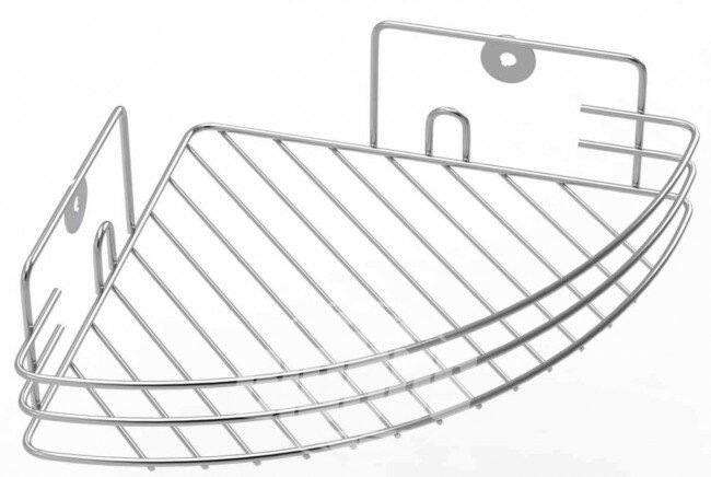 Полочка угловая решетчатая выполнена из хромированного железа, устойчивого к воздействию высоких температур и влажности. Аксессуар надежно фиксируется на угол стены, а металлический борт предотвращает падение банных принадлежностей. Решетчатая конструкция легко моется и позволяет поддерживать чистоту ванной комнаты.