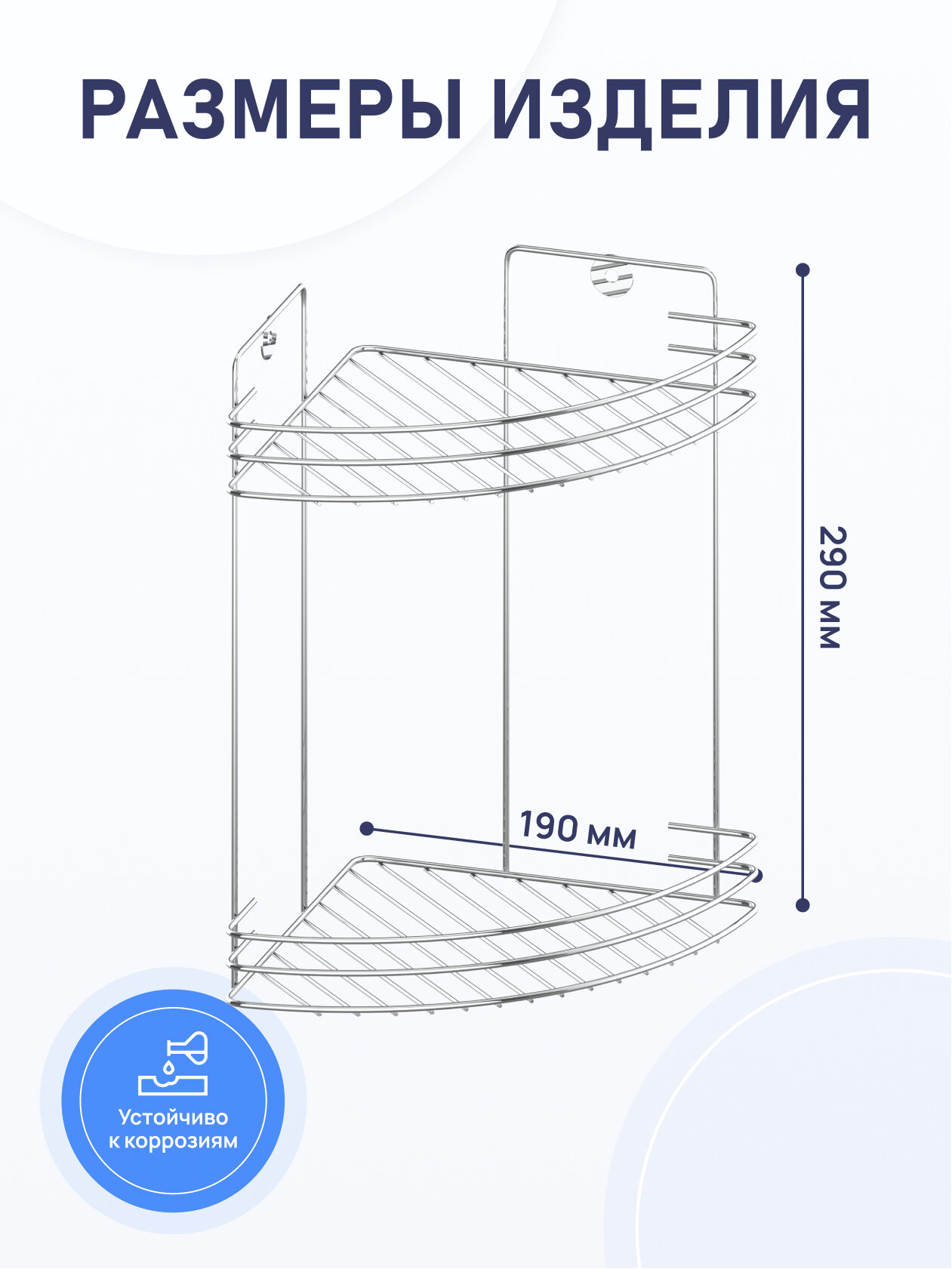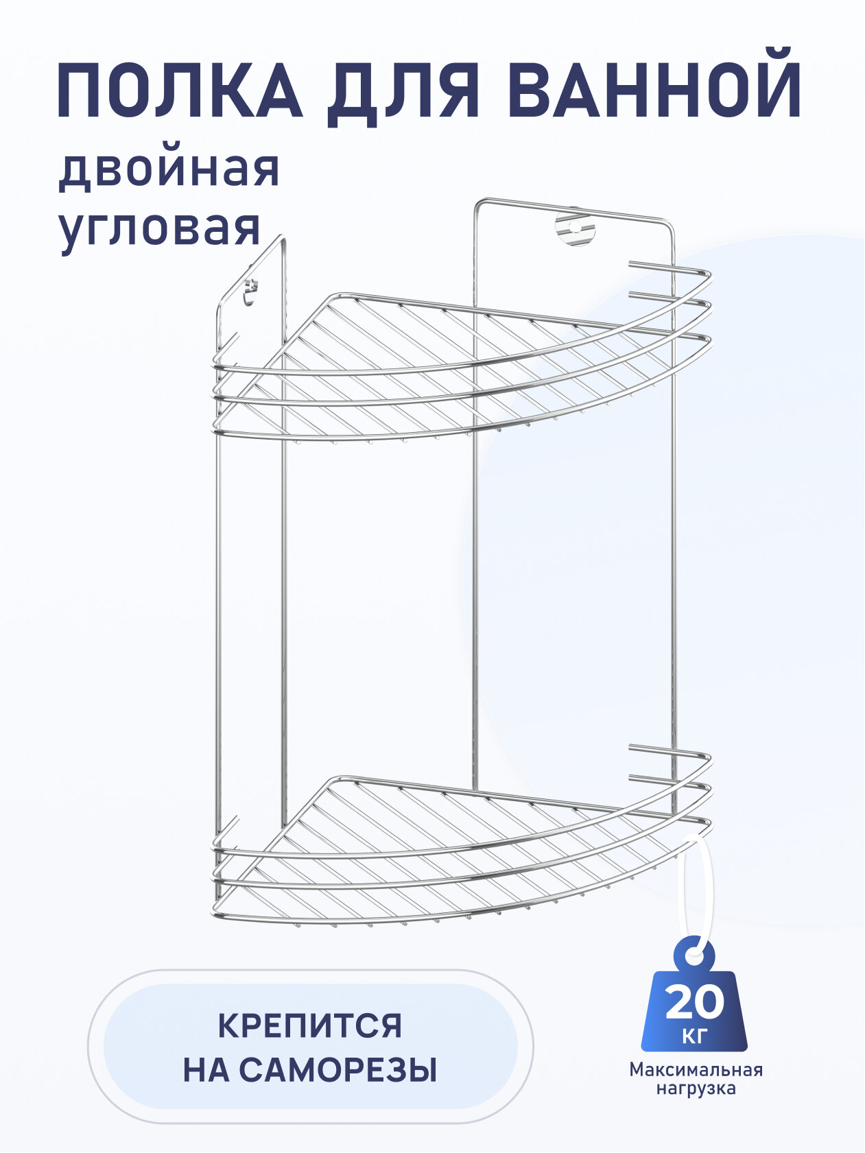Полочка угл. решетчатая 2-я, 19*19*29см - Двойная угловая решетчатая полочка производителя Corsa выполнена из хромированного железа, устойчивого к воздействию высоких температур и влажности. Аксессуар надежно фиксируется на угол стены, а металлические бортики предотвращают падение банных принадлежностей. Решетчатая конструкция полки легко моется и позволяет поддерживать чистоту ванной комнаты.