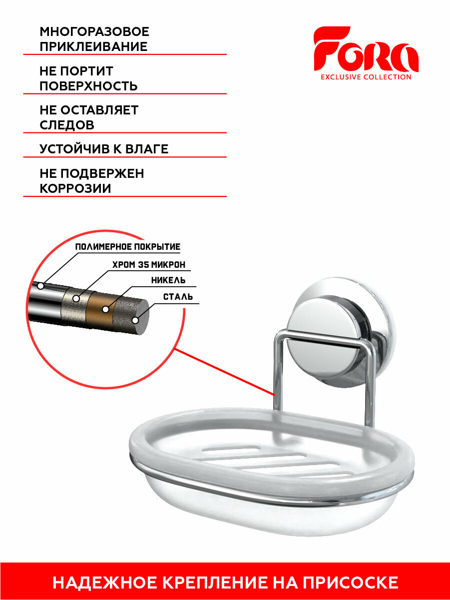 Мыльница на присоске Fora Atlant A036 - изготовлена из хромированного металла.