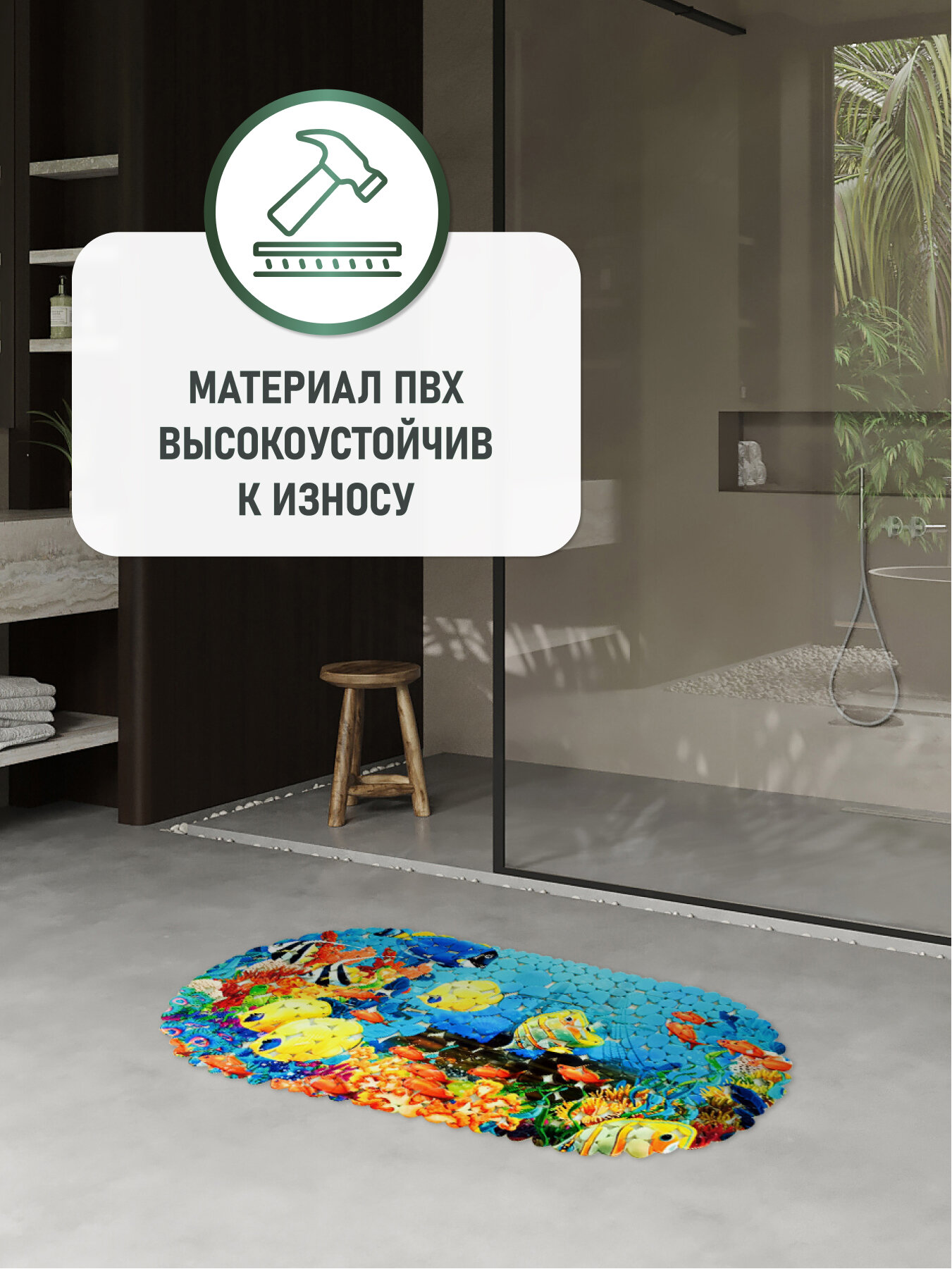 SPA-коврик «Морское дно» FORA – это частица моря в вашем доме. Его бугристая поверхность поможет сохранить устойчивость на влажной поверхности ванны. Созданный из ПВХ аксессуар является абсолютно безвредным для здоровья. Его легко закрепить на дне ванны при помощи специальных присосок, которые расположены на обратной стороне коврика.