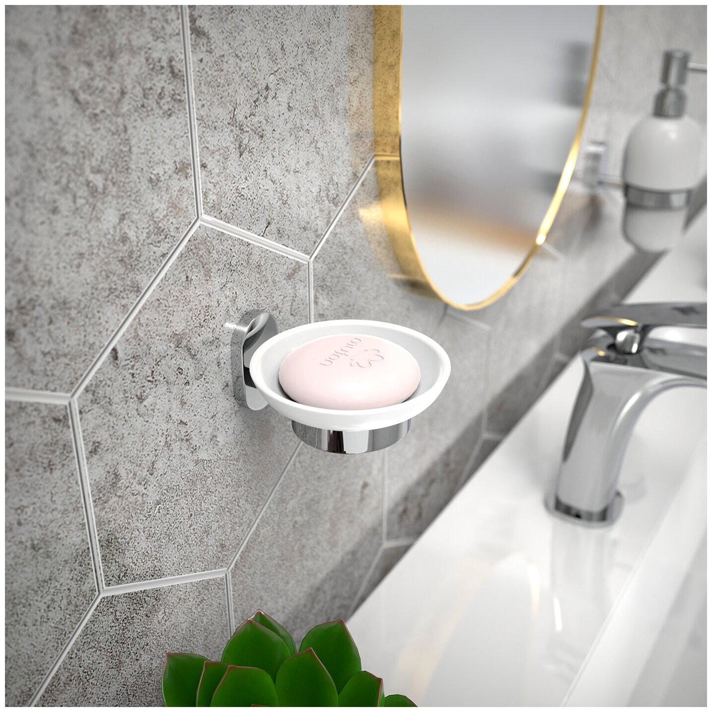 Помочь сделать ванную стильной и современной поможет элегантная дизайнерская мыльница. Именно такой является керамическая мыльница от бренда FORA – оптимальное сочетание красоты и функциональности. Подвесная мыльница не занимает места на полочке, так как крепится к стене при помощи прочного металлического держателя. Белоснежная керамическая чаша на основании из металла с блестящим хромоникелевым покрытием – универсальный аксессуар, который украсит любую ванную и подчеркнет изысканность интерьера. Мыльница от FORA не подвержена коррозии, она станет неотъемлемым элементом ванной на протяжении многих лет.