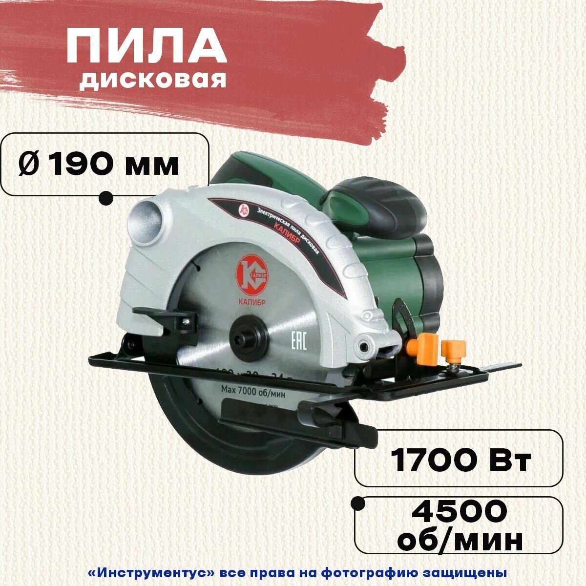 Дисковая пила Калибр ЭПД-1700/190+