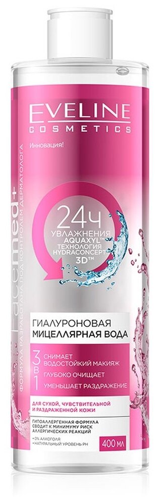 На сегодняшний день товар «Вода мицеллярная Eveline (Эвелин) гиалуроновая 3в1 серии facemed+ 100мл (1122727)» можно купить с кешбеком в 1 магазине: Яндекс.Маркет