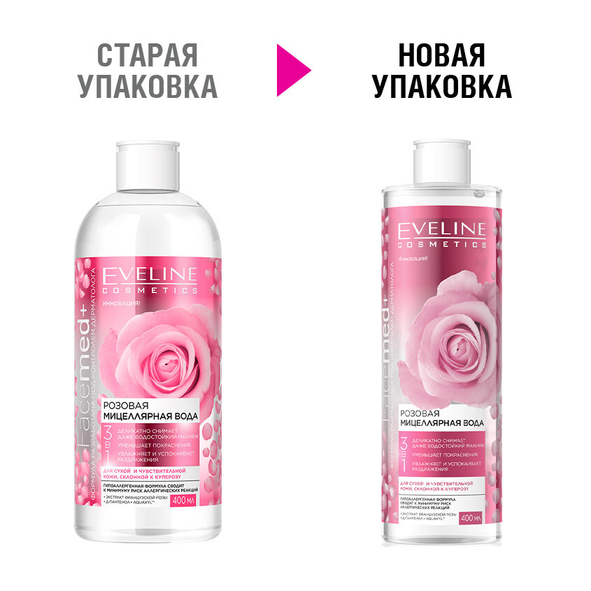 Вода мицеллярная Eveline (Эвелин) розовая 3в1 серии facemed+ 400мл (1122727)
