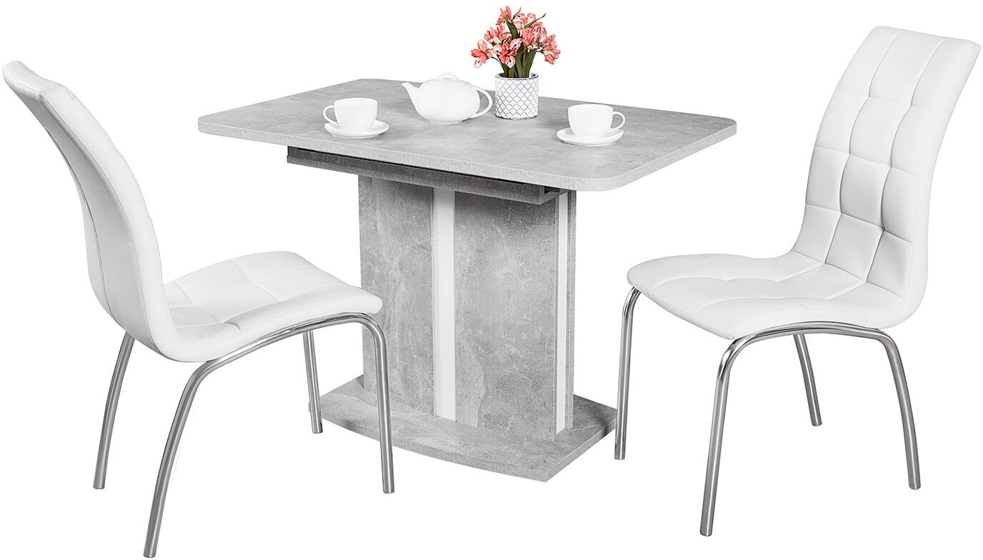 Кухонный стол раздвижной из материала ЛДСП в цвете «бетон, белый».