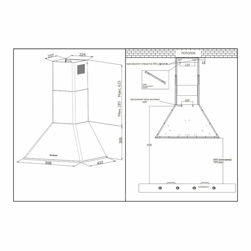 | Мин высота над электрической плитой | 650.000 |