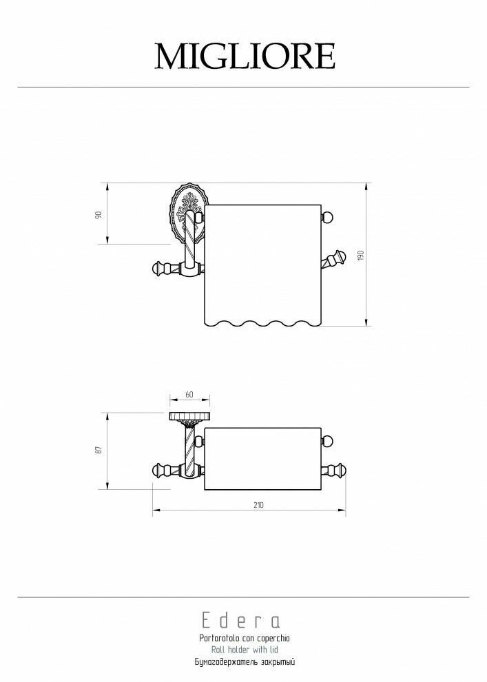 Держатель туалетной бумаги Migliore Edera 16886 с крышкой.