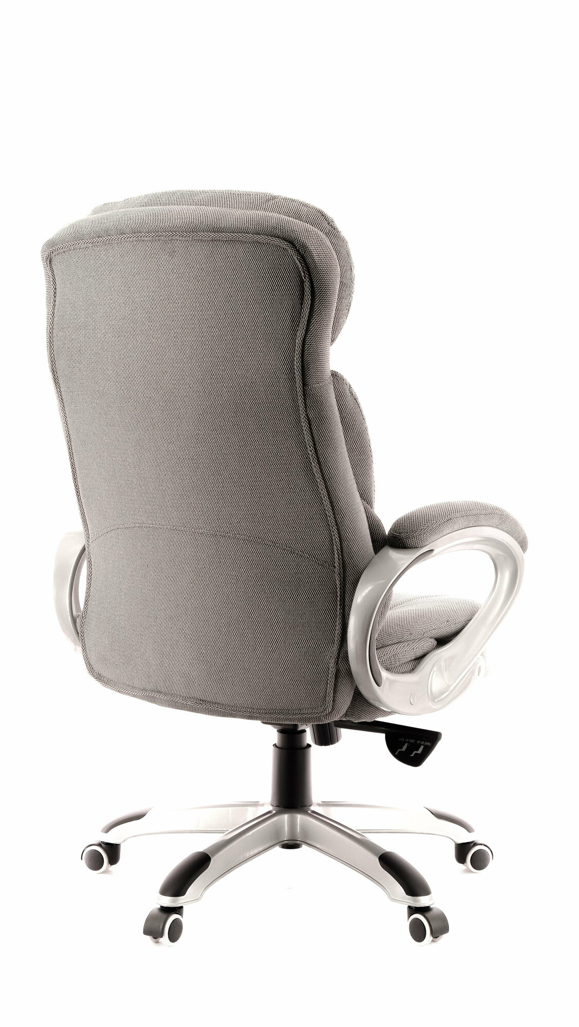 Кресло руководителя Everprof Boss имеет оббивку из высококачественной ткани, под которой находится вспененный полиуретановый наполнитель плотностью 25 кг/куб.м. Модель обладает немонолитным каркасом, установленным на прочную пластиковую крестовину, которая оснащена пятью 50-мм роликами BIFMA. Они гарантируют плавное перемещение кресла, не причиняя при этом вреда напольному покрытию. Также в модели предусмотрены удобные пластиковые подлокотники с мягкими накладками.