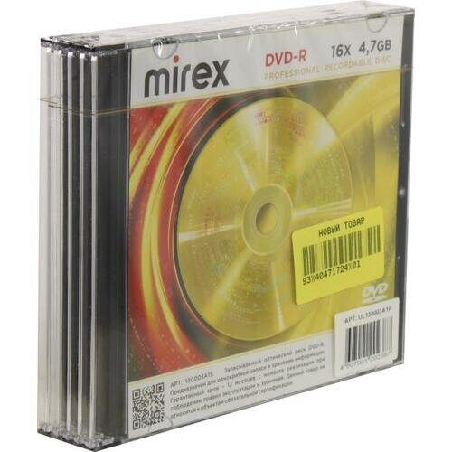 DVD-R диск Mirex 4.7Gb 16x Slim Case 5 шт. (202387)
