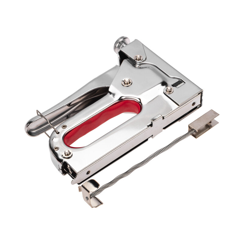 Металлический мебельный степлер предназначен для закрепления обивки мебели, сборки шкафов, укрепления плакатов, строительства парников, укладки напольных покрытий, закрепления проволочной сетки. REXANT гарантирует высокое качество работы степлера даже при длительной и интенсивной эксплуатации.ОсобенностиИзготовлен из высококачественной конструкционной стали. Благодаря специальному механизму, позволяющему снизить усилие на рукоятях, Вы сможете работать продолжительное время без перерывов. На эргономичной рукоятке предусмотрены резиновые противоскользящие накладки. Регулировочный винт, расположенный на корпусе, позволяет самостоятельно настроить силу удара. Для совместного использования с инструментом подходят прямоугольные скобы ТИП53 шириной от 4 до 14 мм (в комплекте поставляется 50 шт).