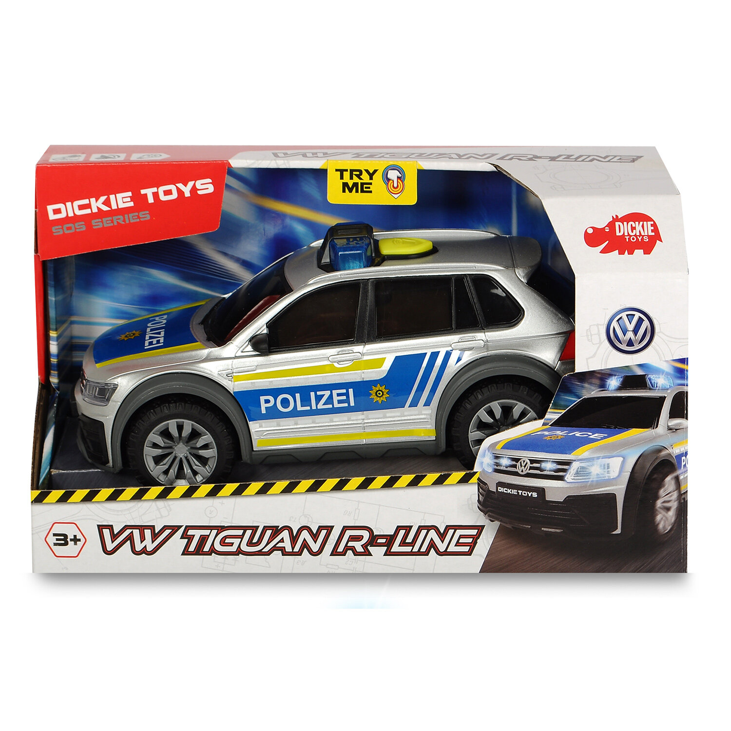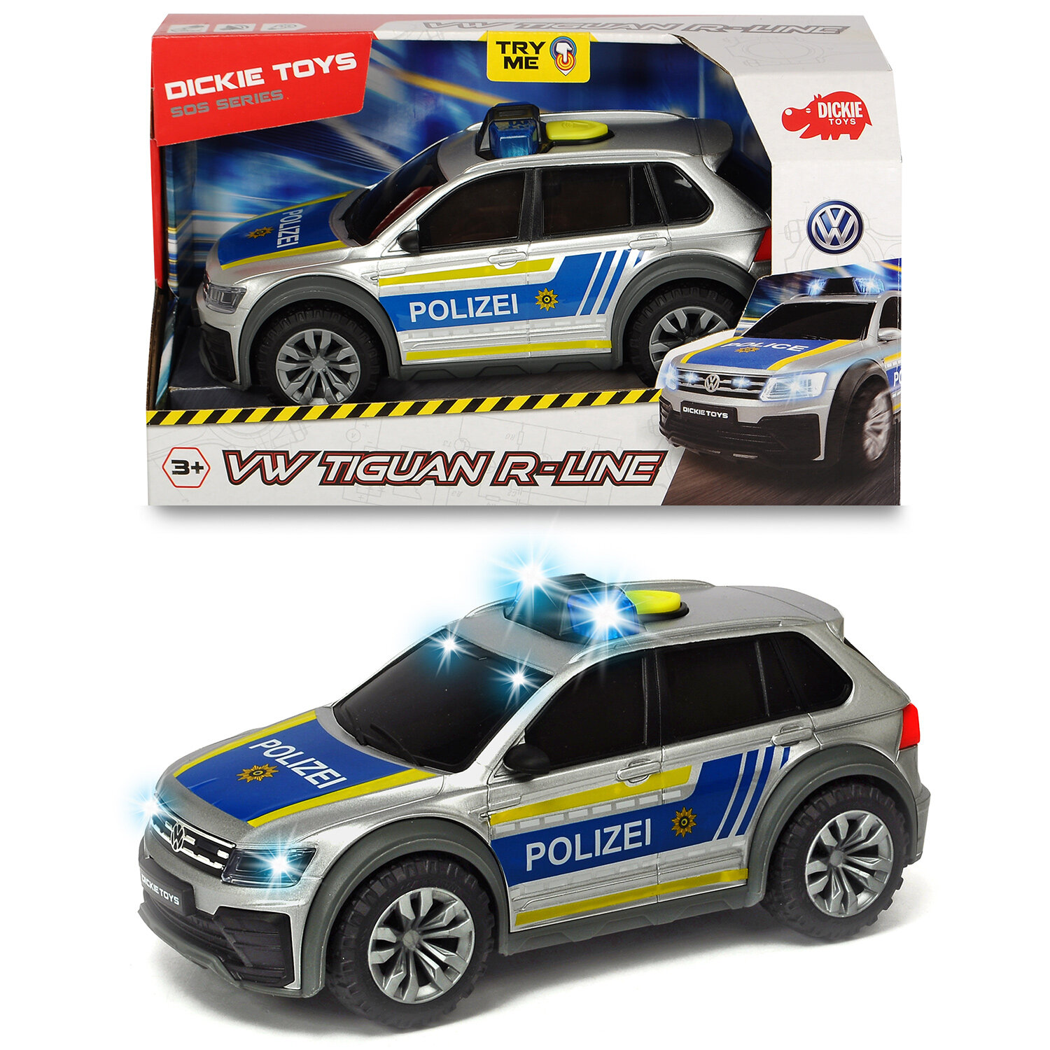 Полицейский VW Tiguan R-Line является идеальным коллекционным произведением для молодых автолюбителей. SOS серия. Полицеский автомобиль VW Tiguan R-Line со световыми и звуковыми функциями, свободный ход. Размер 25см (масштаб 1:18).