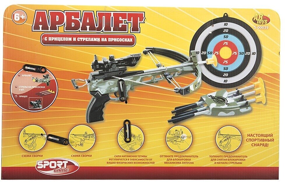 Арбалет игрушечный ABtoys со стрелами на присосках s-00039 Арбалет со стрелами на присосках