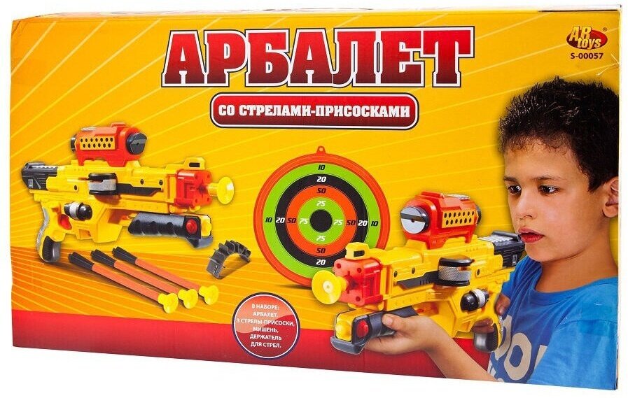 Сервис сравнения цен СкидкаГИД предлагает сравнить цены на товар «Арбалет ABtoys со стрелами на присосках желтый (3 стрелы мишень и держатель для стрел) S-00057 Арбалет со стрелами на присосках S-00057»