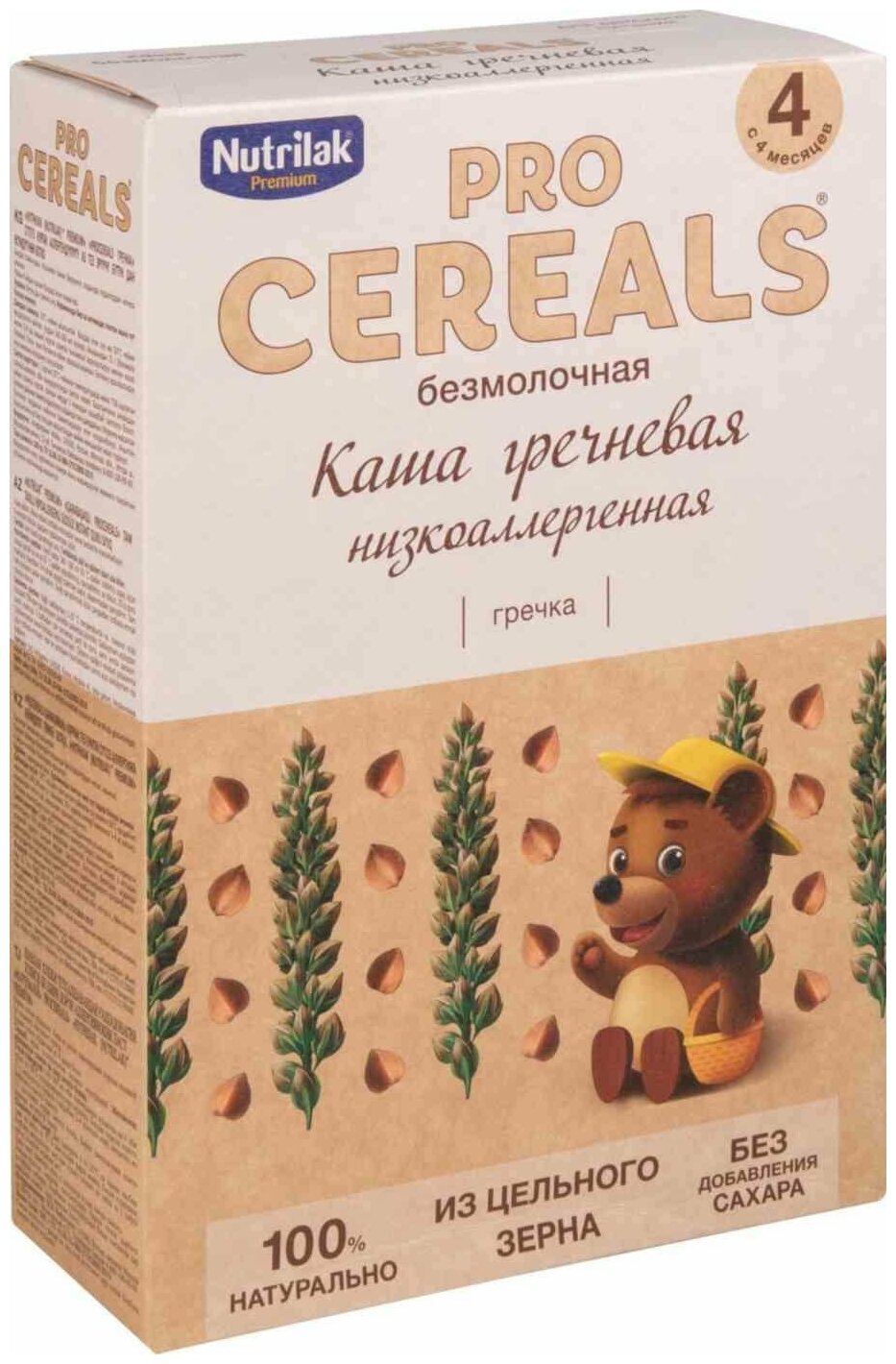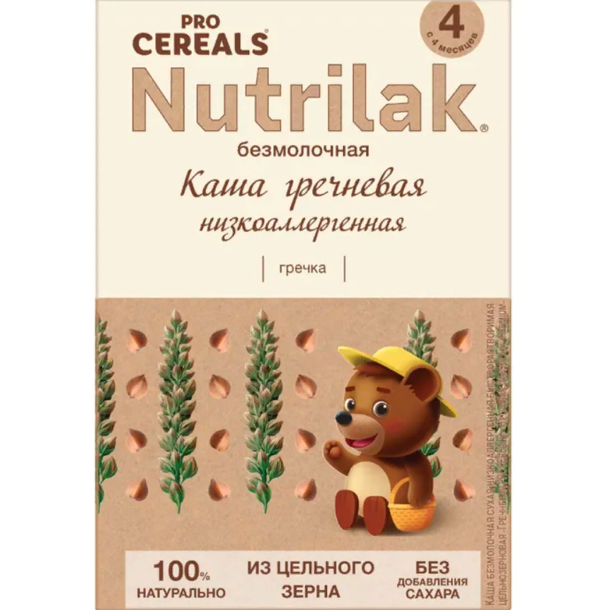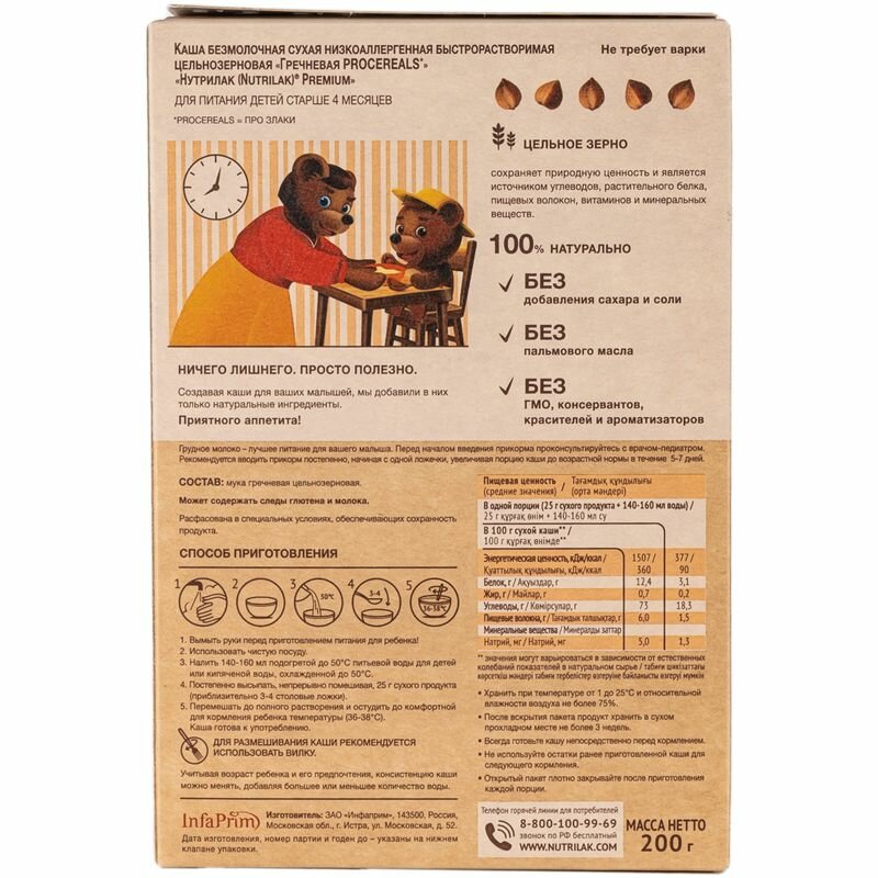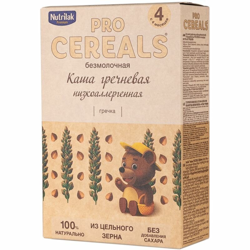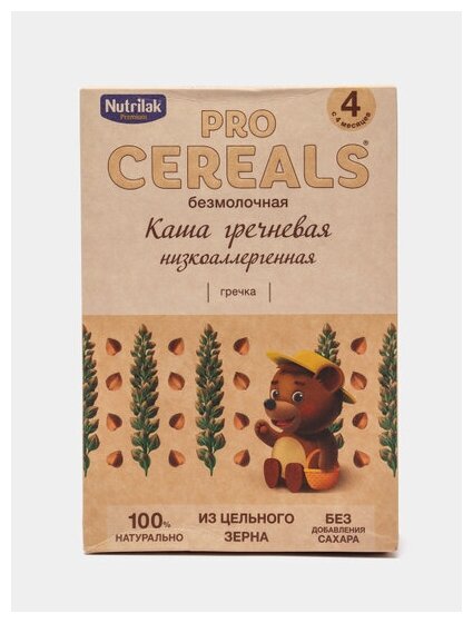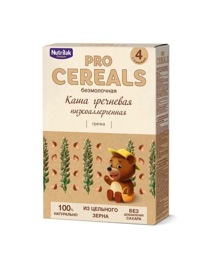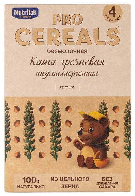 Каша гречневая Nutrilak Premium Pro Cereals цельнозерновая безмолочная низкоаллергенная разработана с использованием принципа " Чистая этикетка" :
