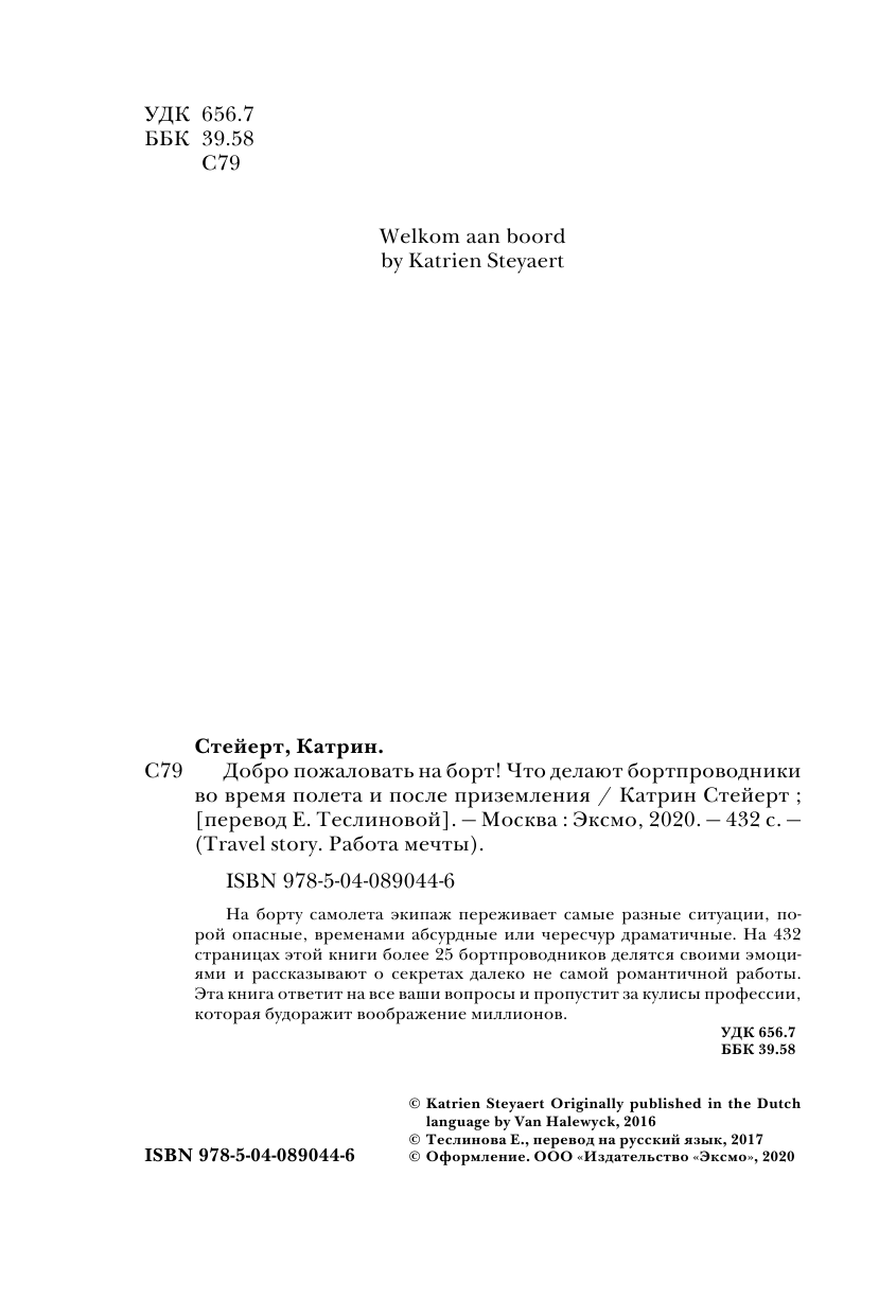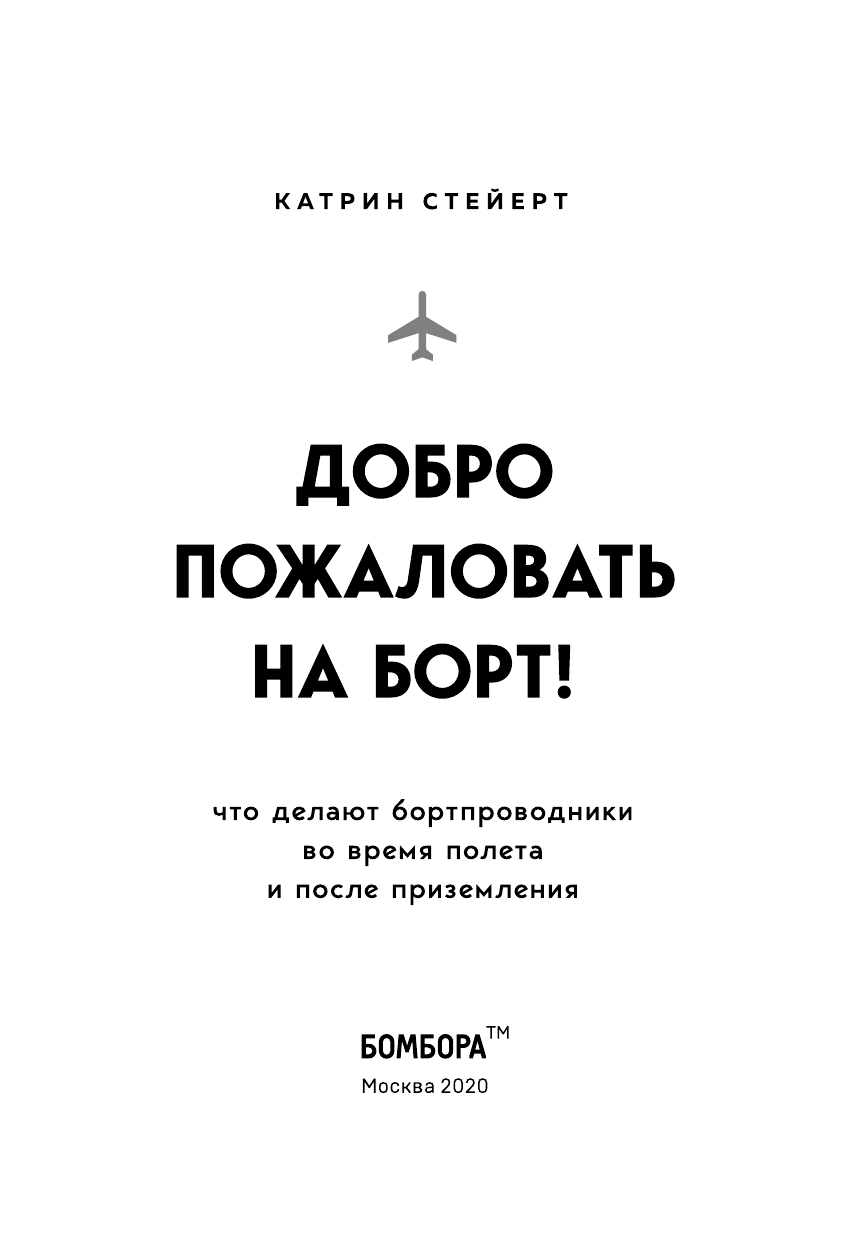 Добро пожаловать на борт! Что делают бортпроводники во время полета и после приземления (Катрин Стейерт); Бомбора, 2020