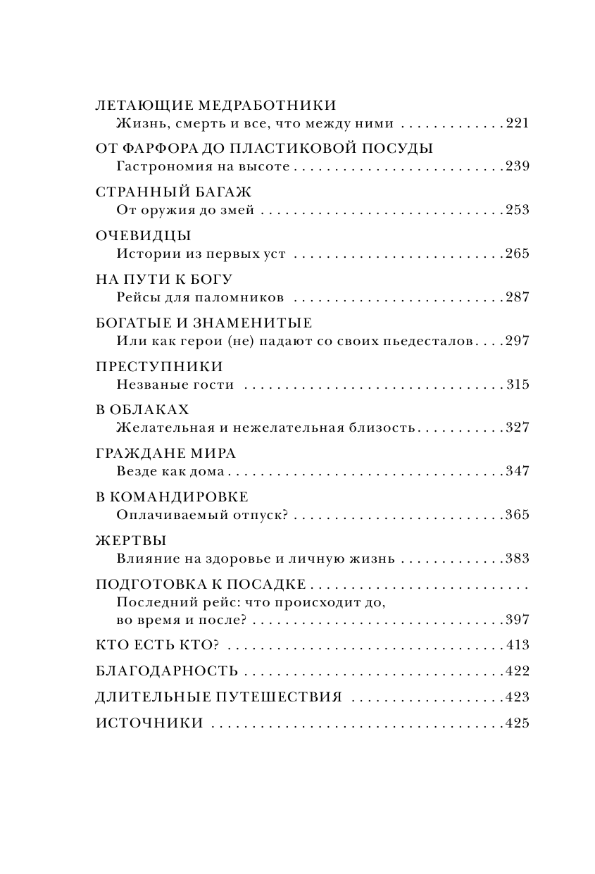 На борту самолета экипаж переживает самые разные ситуации, порой опасные, временами абсурдные или чересчур драматичные. На 432 страницах этой книги более 25 бортпроводников делятся своими эмоциями и рассказывают о секретах далеко не самой романтичной работы.