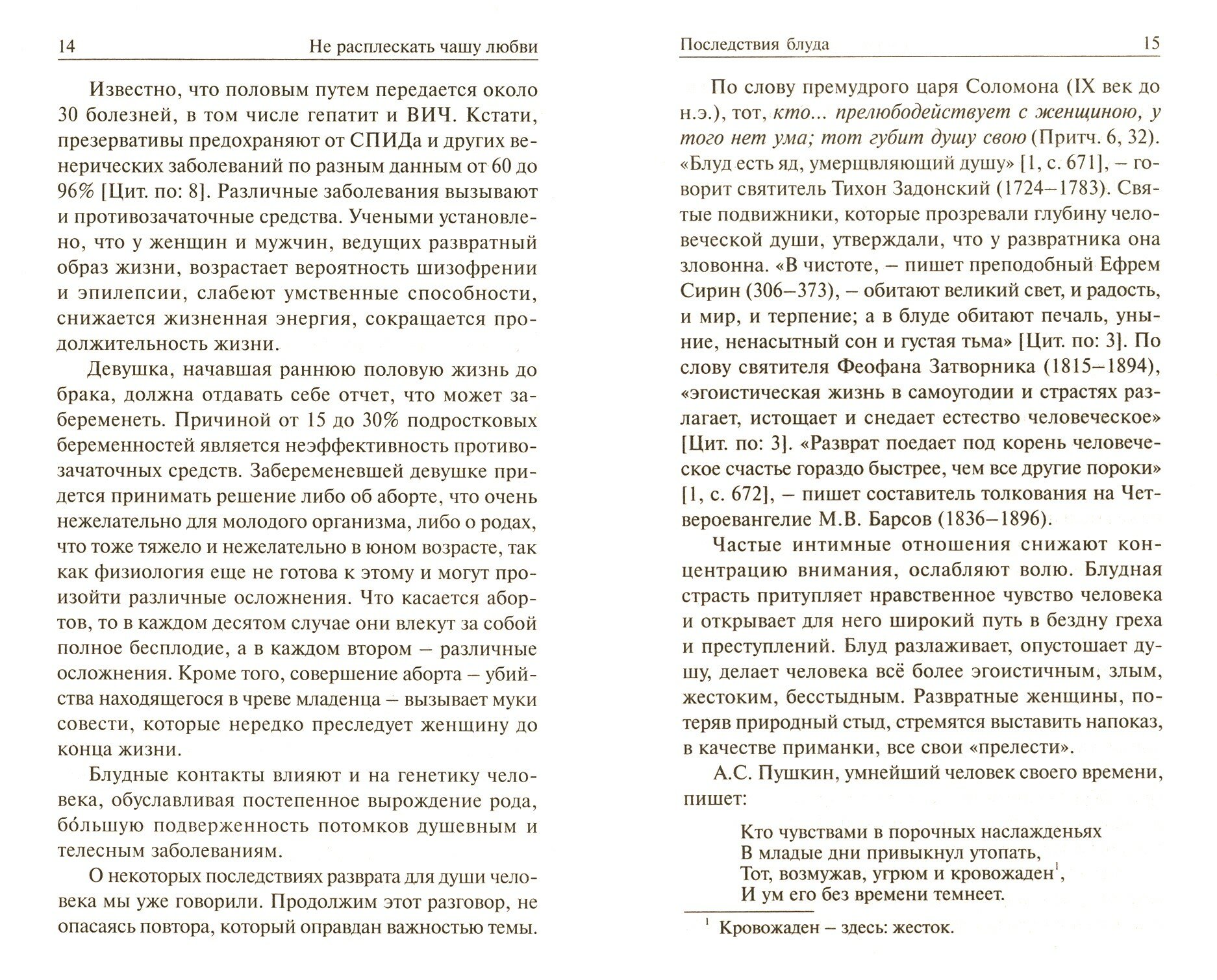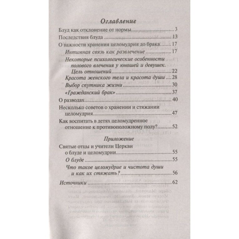 Почему это так важно? Каковы последствия блуда для души и тела человека? Как воспитывать целомудрие в детях? Как сохранить его в юношеском возрасте? Как стяжать целомудрие? Что говорят о блуде и целомудрии святые отцы и учители Церкви? На эти и другие вопросы вы найдете ответы в этой небольшой брошюре, предназначенной для широкого круга читателей.