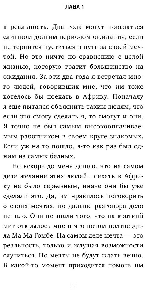 Эта книга удивила меня необычной формой подачи философских мыслей и жизненных ориентиров. Казалось бы, красивое приключение молодого человека по Африке, его первое знакомство с местной флорой и фауной, с местными традициями, иными словами, нестандартный отдых. Но. Важнее самого путешествия общение с Ма Ма Гомбе – африканкой, проводницей Джека. Ее восприятие жизни поражает, вдохновляет, меняет твое собственное.
