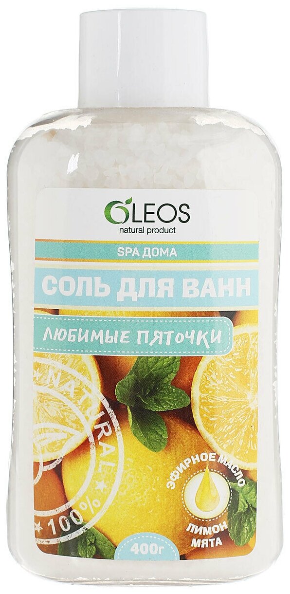 Натуральная морская соль Oleos Любимые пяточки с эфирными маслами мяты и лимона обладает свежим, цитрусовым ароматом с оттенком камфоры, снимает напряжение, тяжесть, скованность в ногах. Эфирные масла лимона и мяты перечной, входящие в состав, обладают противовоспалительными и бактерицидными свойствами, помогают эффективно бороться с повышенным потоотделением, смягчают кожу ступней, делают ее нежной и гладкой.