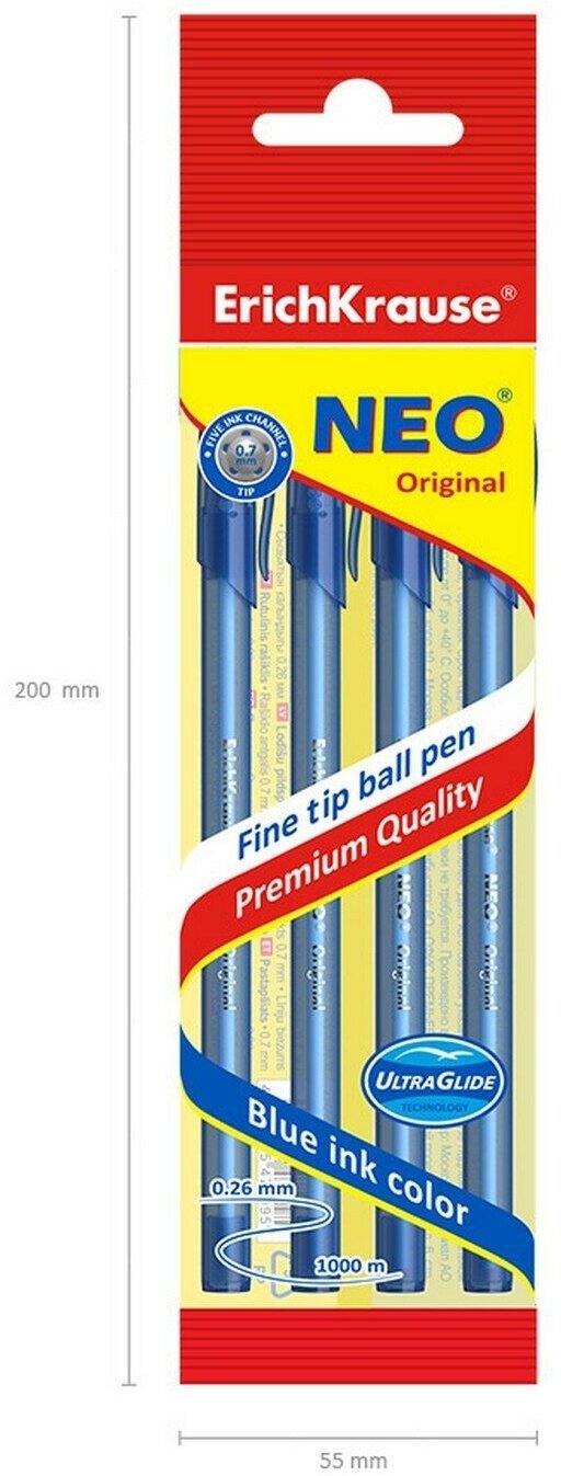 Ручка Erich Krause Neo Original шариковая синяя 0.7мм 4шт ErichKrause Neo Stick Original