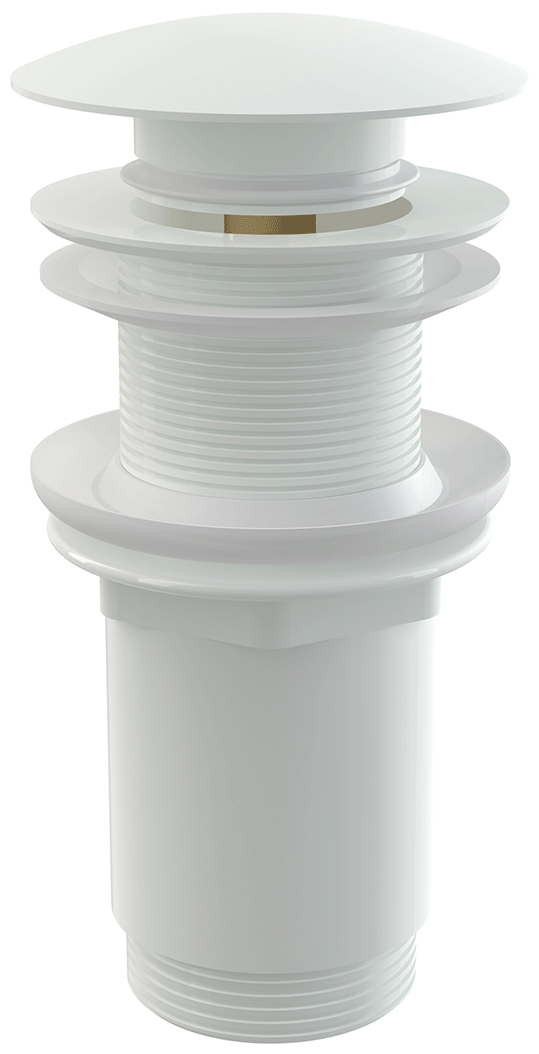 Донный клапан сифона для умывальника CLICK/CLACK 5/4", цельнометаллический без перелива и большой заглушкой. Цвет: белый. Резьбовое соединение 5/4" для подключения сифона. Обладает высокой устойчивостью к механическим повреждениям. Длительный срок службы механизма CLICK/CLACK. Материал: латунь с поверхностной обработкой белого матового цвета.