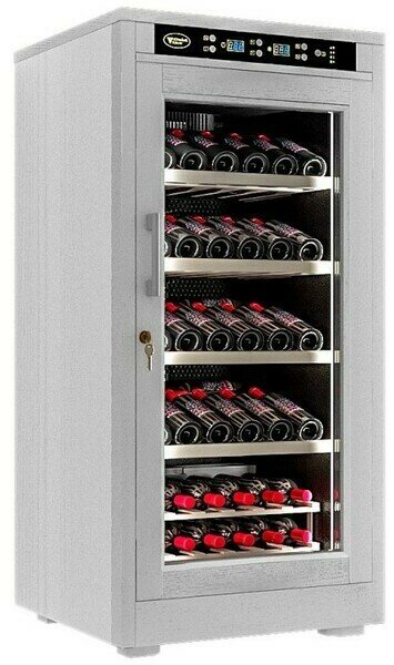 Cold Vine – это отдельно стоящий холодильный винный шкаф, обшитый американским дубом в белом цвете. Прекрасный элемент интерьера в любом доме или ресторане. Однокамерный объем позволит настроить один параметр температуры и влажности, удовлетворяющий настройкам для хранения вашей винной коллекции. Дверь с тройным стеклом с защитой от ультрафиолета.
