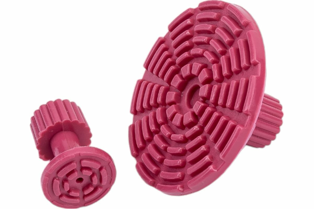 Набор пластиковых адаптеров для беспокрасочного удаления вмятин 19 предметов включает в себя круглые, овальные и прямоугольные элементы, которые монтируются на кузов для вытягивания металла. Специальная форма позволяет охватить основные типы повреждений.