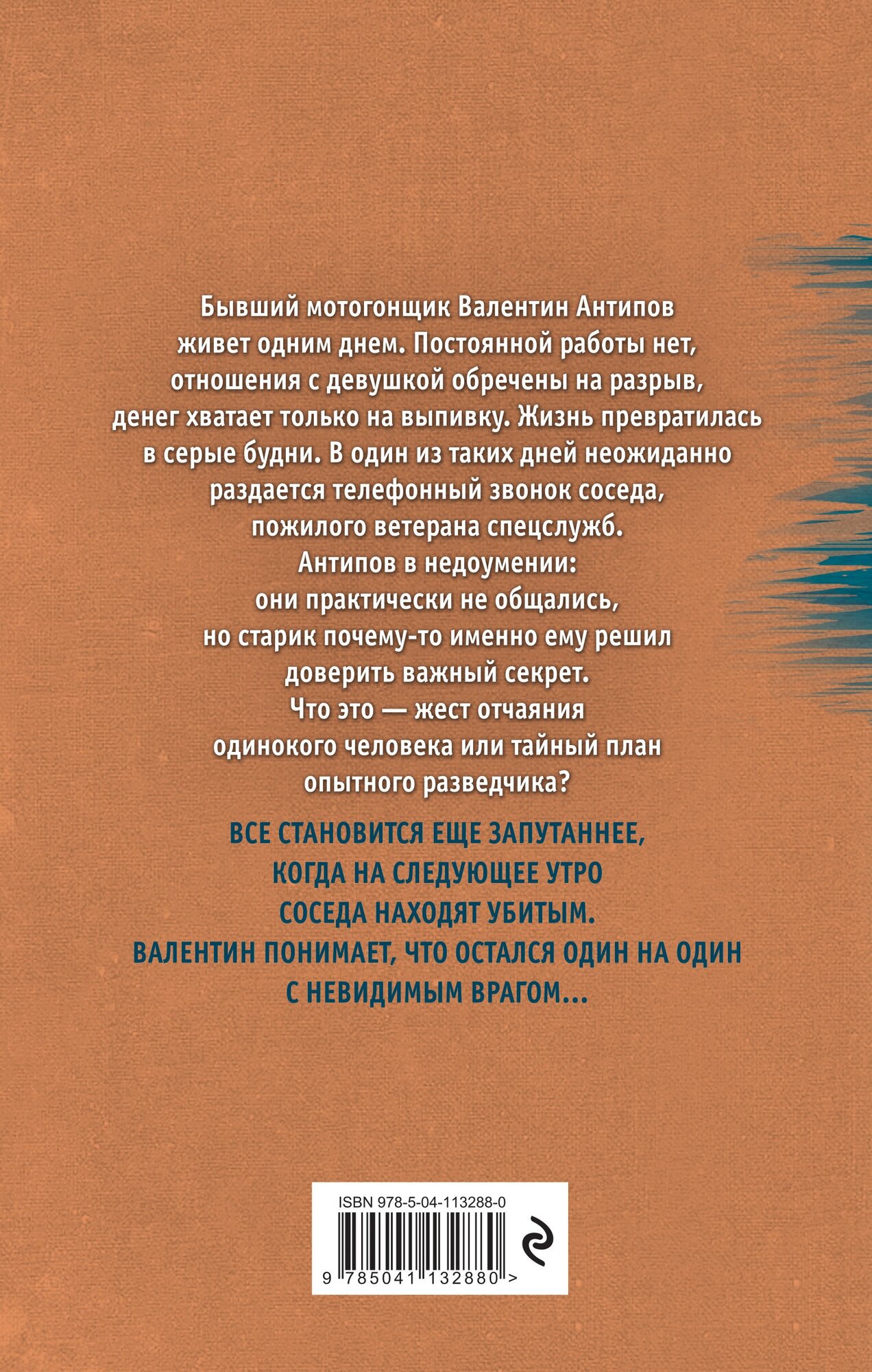 Бывший мотогонщик Валентин Антипов живет одним днем. Постоянной работы нет, отношения с девушкой обречены на разрыв, денег хватает только на выпивку. Жизнь превратилась в серые будни. В один из таких дней неожиданно раздается телефонный звонок соседа, пожилого ветерана спецслужб. Антипов в недоумении: они практически не общались, но старик почему-то именно ему решил доверить важный секрет. Что это – жест отчаяния одинокого человека или тайный план опытного разведчика? Все становится еще запутаннее, когда на следующее утро соседа находят убитым. Валентин понимает, что остался один на один с невидимым врагом…