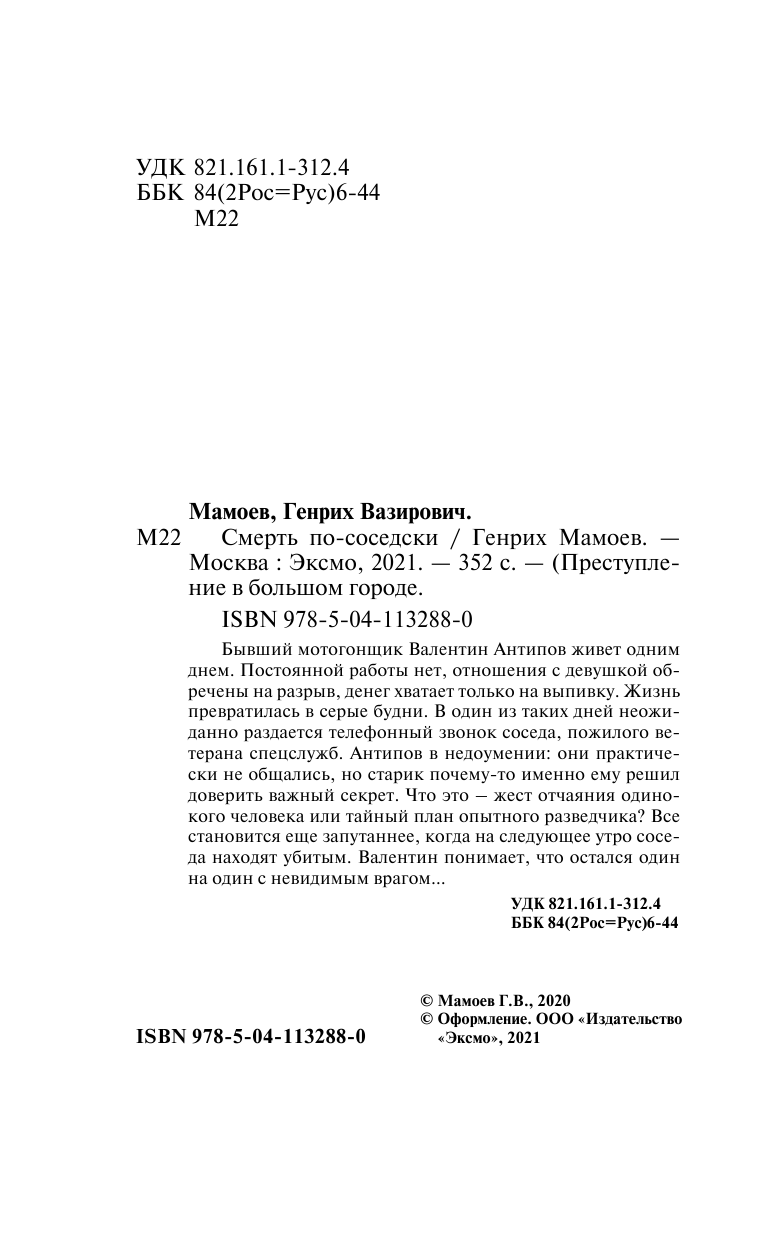 Книга: Смерть по-соседски (Генрих Мамоев); Эксмо, 2020