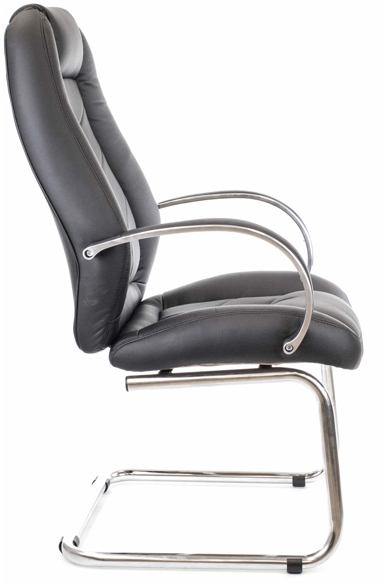 Кресло посетителя Everprof Drift Full имеет оббивку из высококачественной экокожи, под которой находится вспененный полиуретановый наполнитель плотностью 25 кг/куб.м. Модель обладает немонолитным каркасом, установленным на прочные полозья из хромированной стали, которые имеют специальные пластиковые упоры. Также в модели предусмотрены удобные подлокотники из стали с мягкими накладками из PU-кожи.