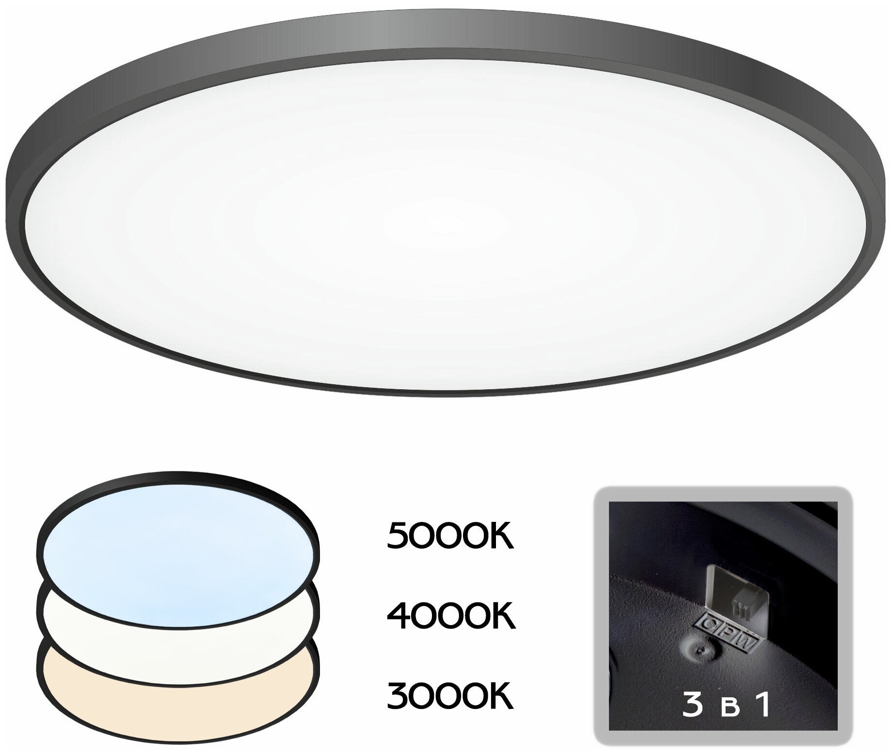 Встроенный диммер. Переключатель цветовой температуры. 3000-4000-5000 К.
