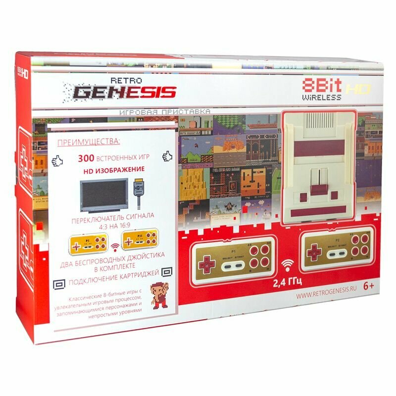 Игровая приставка Retro Genesis +300 игр – устройство с беспроводным геймпадом и с установленным процессором от производителя Motorola. В девайсе используется процессор UA6538 на одно ядро, его тактовая частота составляет 1,79 ГГц. Эта приставка полностью подходит для использования с играми от производителя Dendy. В качестве носителей игр выступают картриджи.