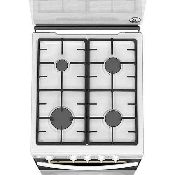 Нет автоматического розжига духовки и гриля, ручной розжиг при этом продуман отлично. Отверстие для розжига посередине скраю. При открытии ящика внизу видно пламя в железном коробе с дырочками, что может быть опасно для очень любопытных детей. Газ-контроль горелок верхней панели не предусмотрен.