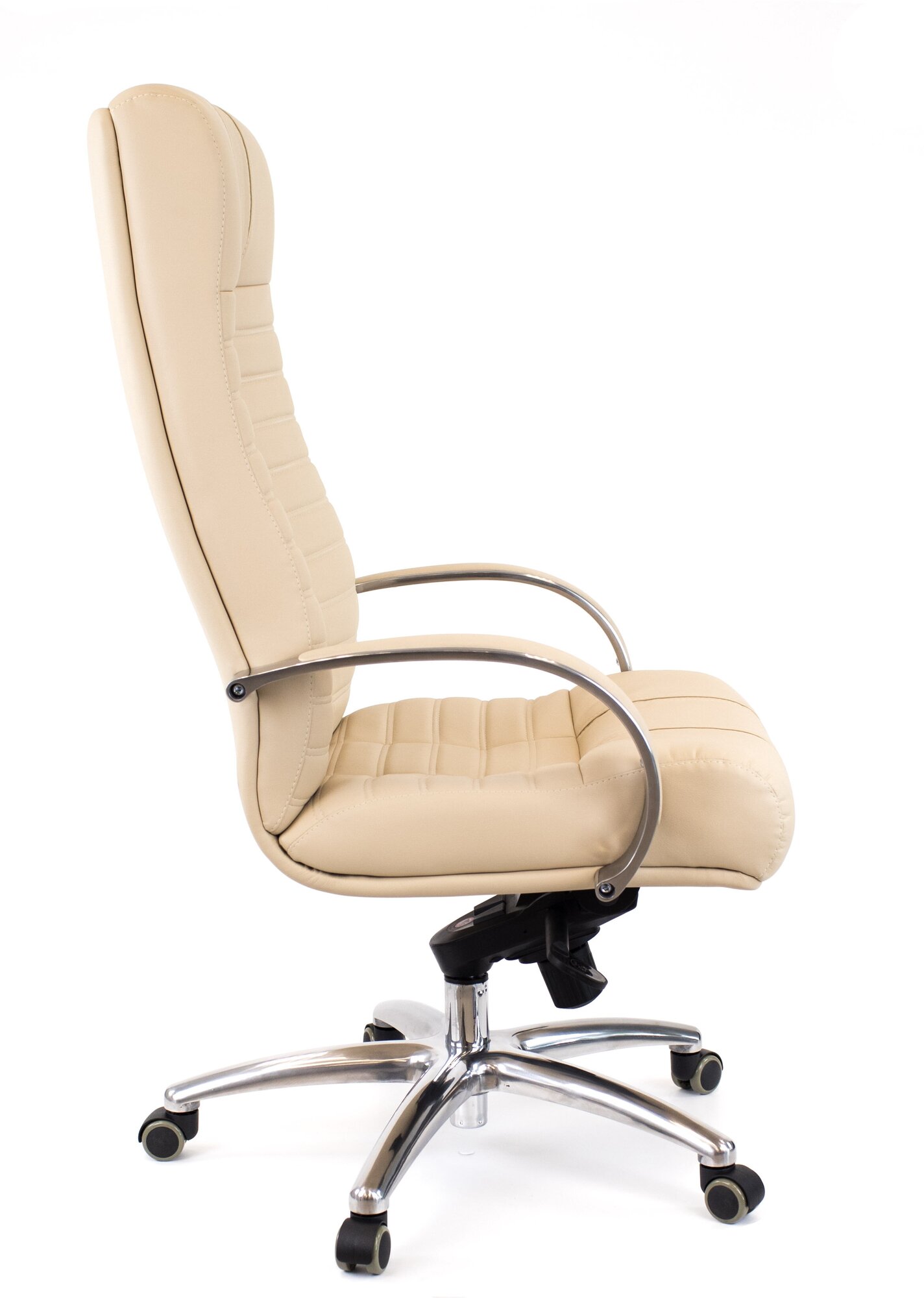 Everprof Atlant имеет продуманную эргономику, которая позволит комфортно находиться в кресле длительное время. Обивка модели выполнена из натуральной кожи, а в качестве наполнителя использован высокоплотный полиуретан. Крестовина изготовлена из алюминия, а ее диаметр составляет 700 мм.