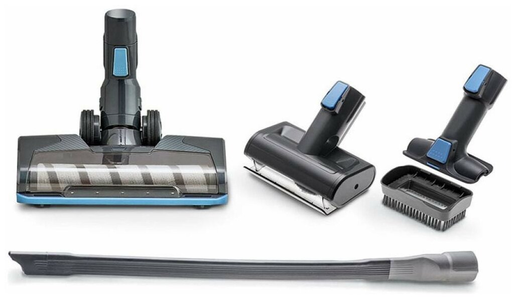 | Насадки в комплекте | электрическая турбощетка с поворотным шарниром и съемным валиком из микрофибры, электрическая турбощетка для мягкой мебели, экстрадлинная гибкая щелевая насадка, 2в1 комбинированная насадка для чистки мебели |